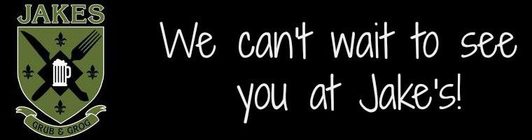 Jake's Grub and Grog is open 11am until close Tuesday through Saturday and noon until close on Sundays.
